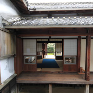 Traditional countryside homes featuring massive beams, wooden joinery, thatched or tiled roofs, tatami rooms, and sliding doors. Some may include outbuildings or small plots for agriculture.